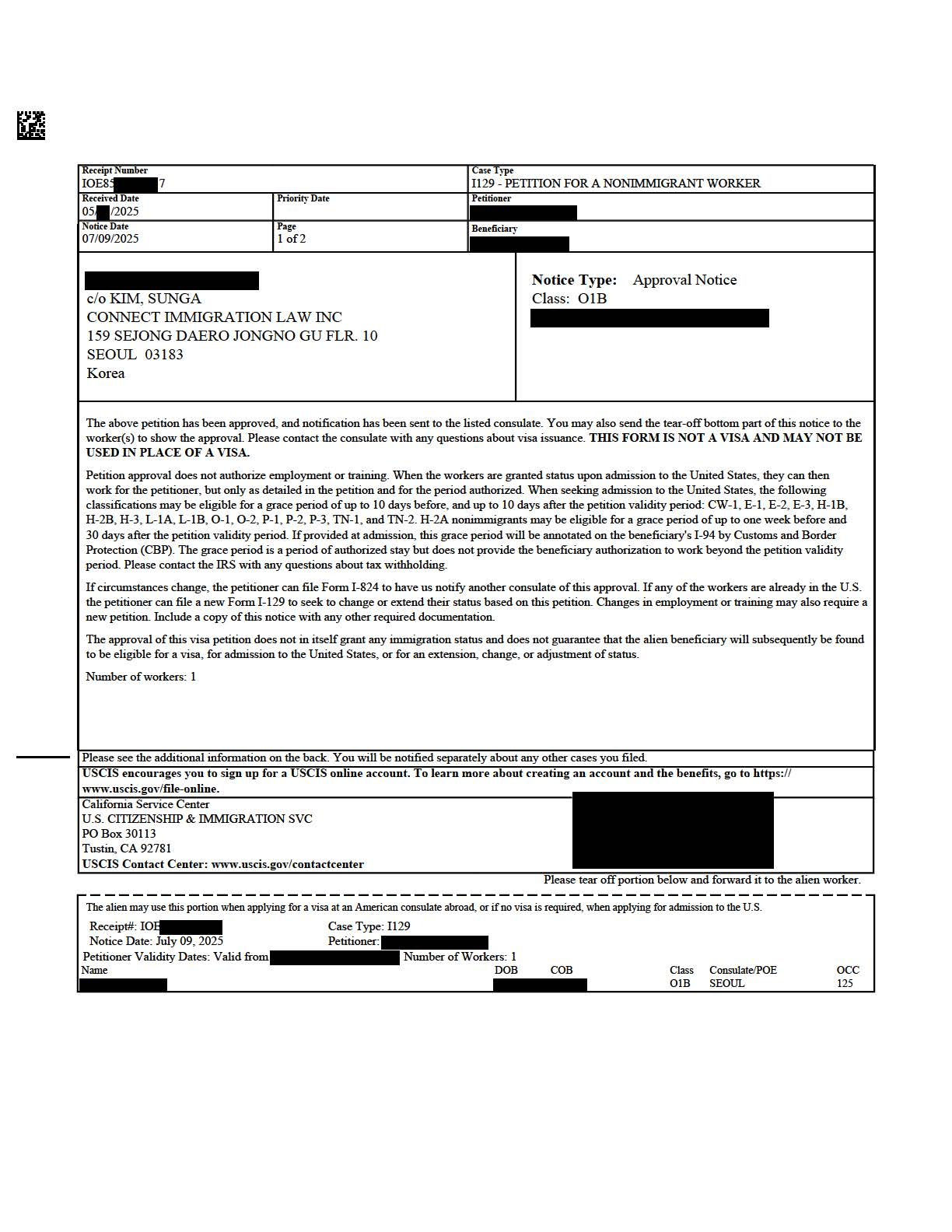 “[성공사례]국내 최정상 영화 감독의 O-1B (예술인 비자, 연예인 비자)승인사례”