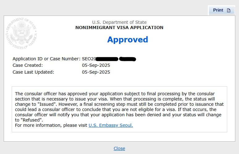 ▶ M님의 K-1 비자 승인 정보